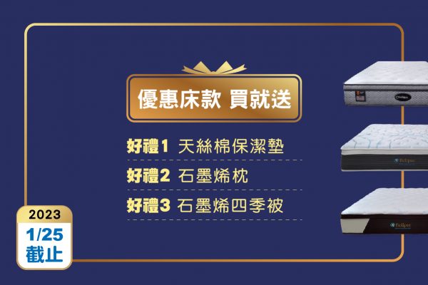 優惠床墊買就送三項好禮