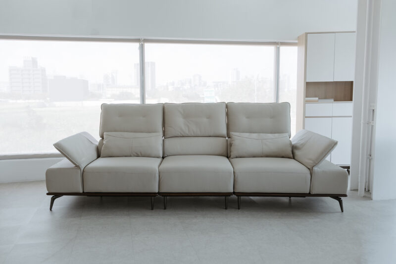 這款電動沙發,結合 精密科技與自然質感,為您打造專屬的放鬆時光。搭載 無線遙控系統,三個座位皆可 獨立調整座深以及背靠高度與扶手角度,輕鬆找到最貼合身形的坐感。