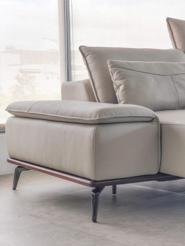 堅固的 胡桃實木框架 承載典雅氣度,高腳設計 方便掃地機器人自由穿梭,維持居家整潔。外層採用 嚴選天然牛皮,柔韌細膩,隨時間更顯品味。