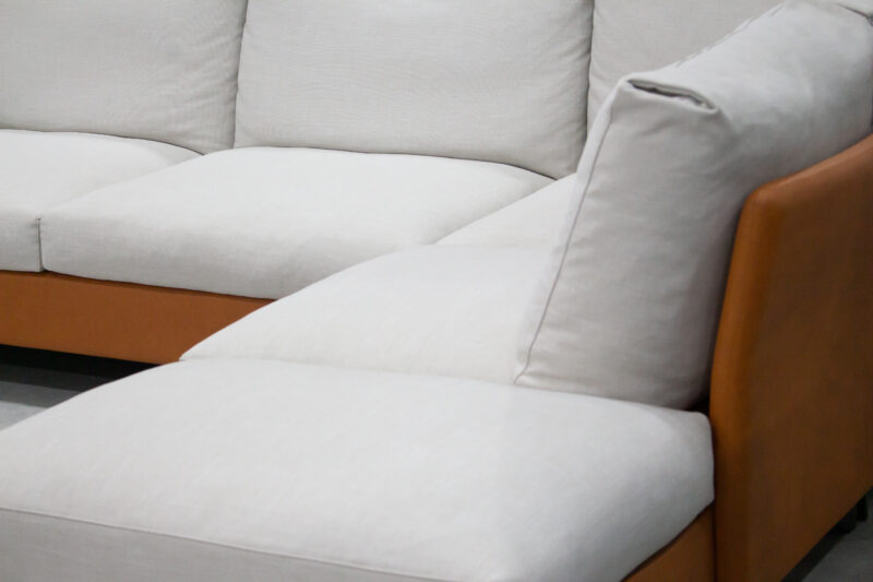 A+A台中家具販售的峇里島布沙發是一張讓你感受到滿滿的安全感沙發,全羽絨填充的背靠扶手,讓你感受到極致的服貼支撐感。