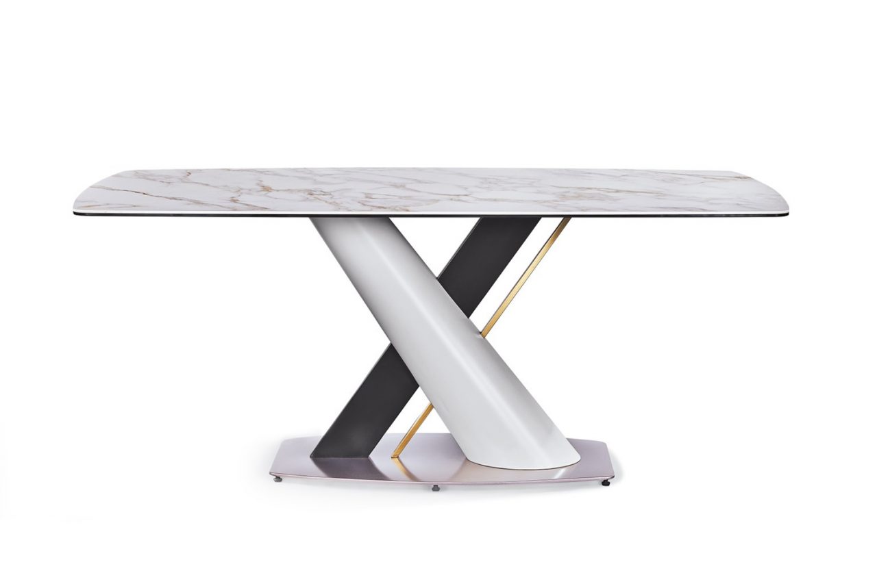 進口岩板桌面+金屬腳座