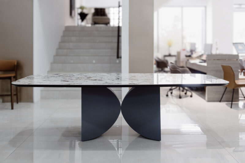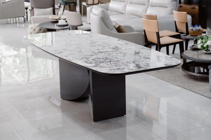 進口岩板桌面,花色都可以根據自己的喜好選擇;現代風格簡約的腳座,整遇見餐桌散發滿滿的質感。 適合家居風格:現代風格