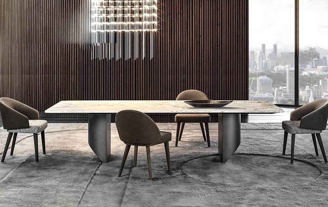 進口岩板桌面+金屬腳座