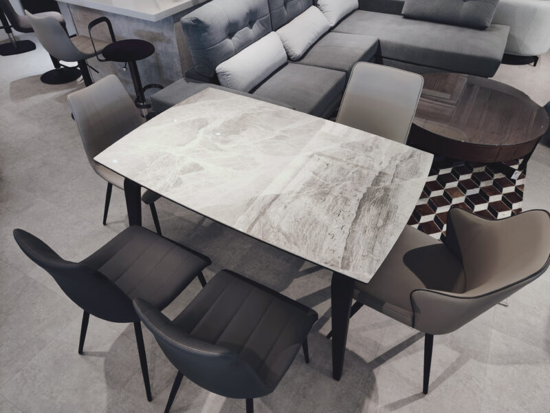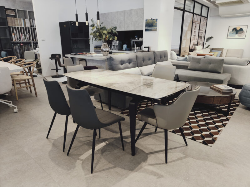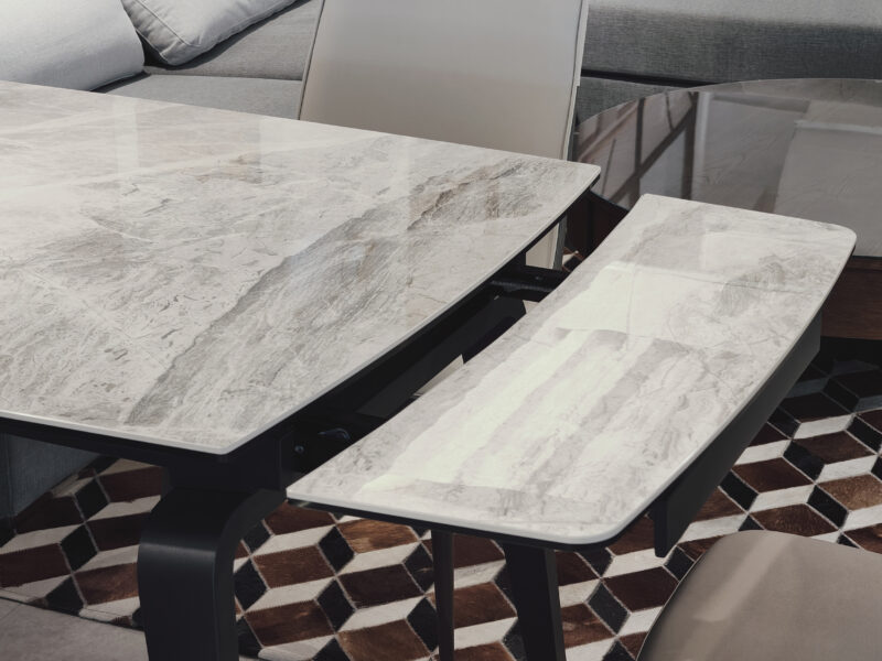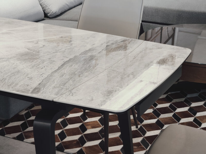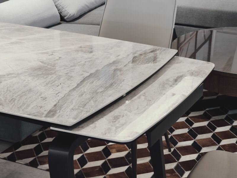 A+A台中家具精選之一,可左右伸縮的餐桌,讓使用上更加彈性,義大利的陶板,讓整個設計更加有美感