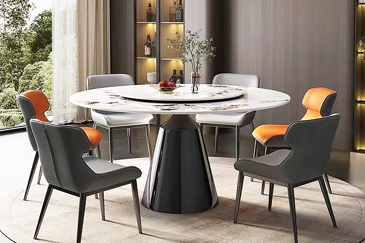 採用天然石材作為桌面,加上很有設計感的桌腳。讓整張餐桌既高貴又優雅。 適合家居風格:現代風格