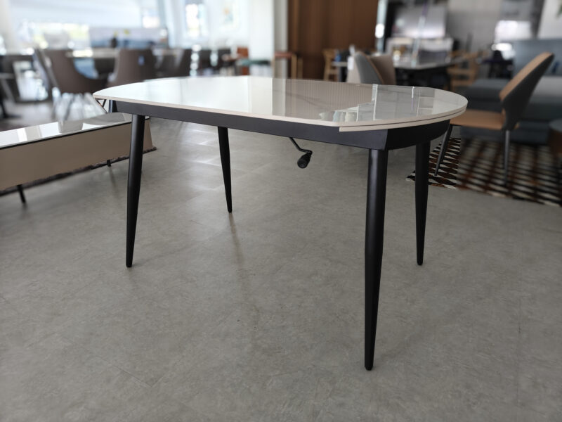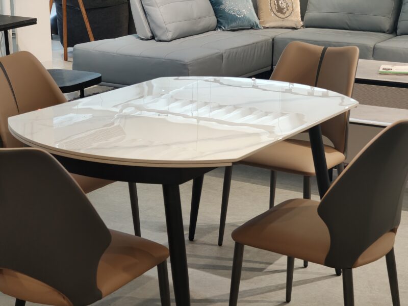 「極簡之韻」的岩板餐桌,結合現代設計與天然材質,呈現出優雅而簡潔的美感。其圓形岩板桌面紋理自然,耐刮耐磨,易於清潔,適合日常使用。桌面下的支架結構穩固,黑色金屬桌腳設計,不僅增添了整體的時尚感,還提供了強大的支撐力。這款餐桌適合現代家庭與各種風格的餐廳空間,既實用又美觀,為您的用餐時光增添無限魅力。