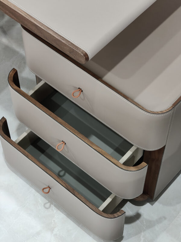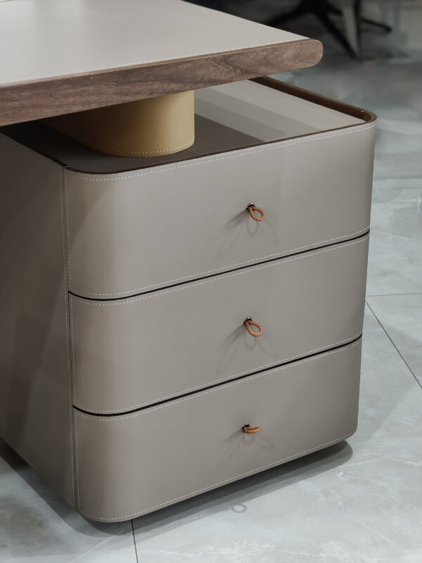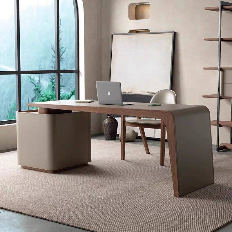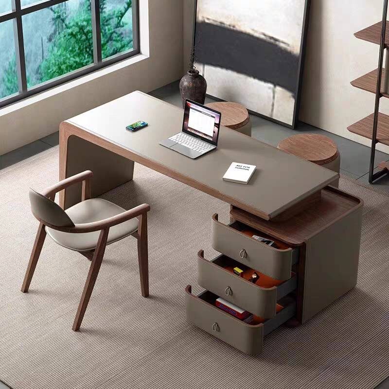 實木貼皮板材+馬鞍皮桌面