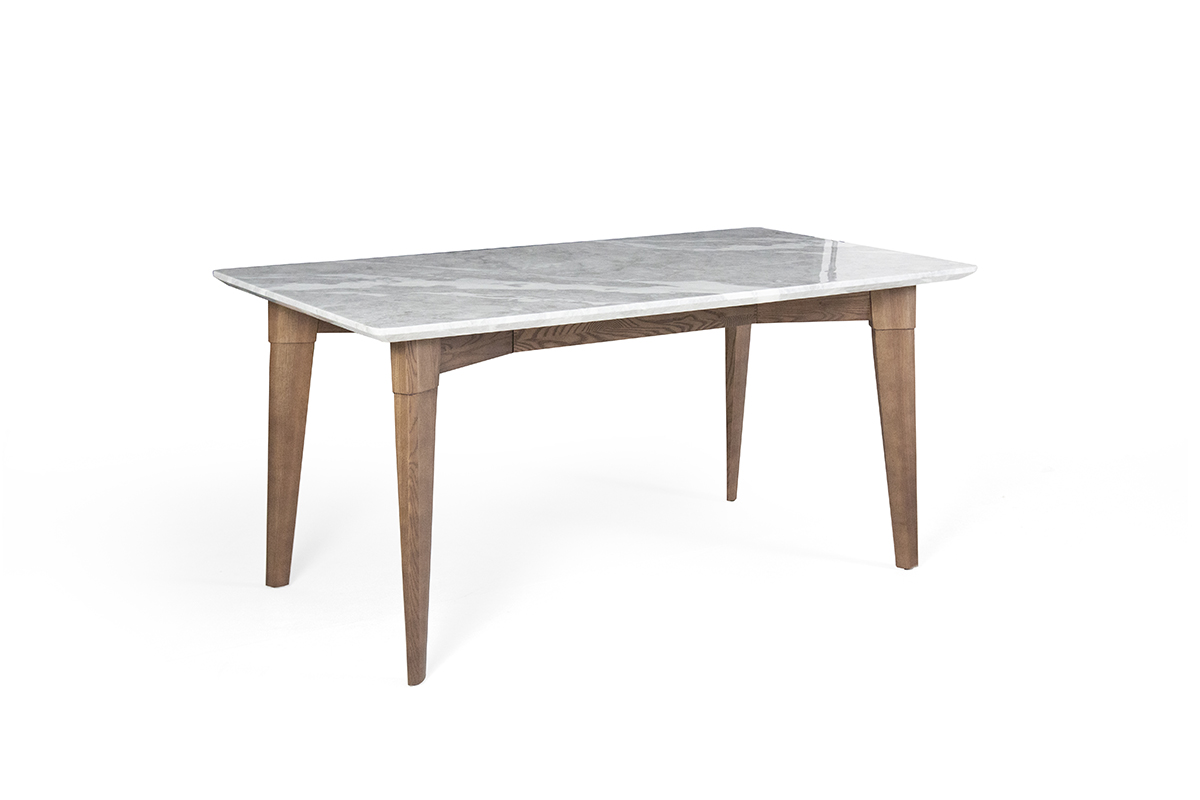 - 餐桌材質:天然大理石+金屬骨架+胡桃木實木貼皮板材