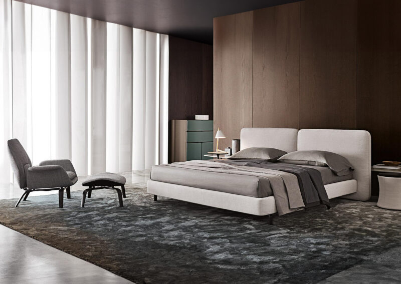 A+A 台中家具的此款床台,有兩大塊簡潔的靠背,讓床更加大器。