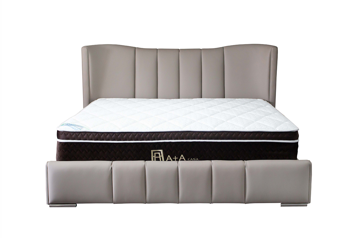 實木+高密度泡棉埴充,科技皮革包覆床頭與床框