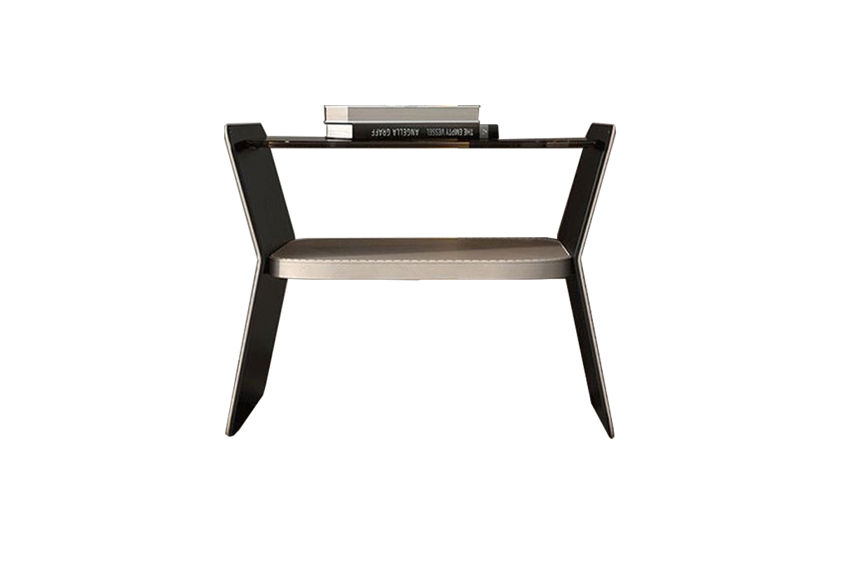 很有設計感的一張床頭櫃,玻璃面讓整體變得輕盈