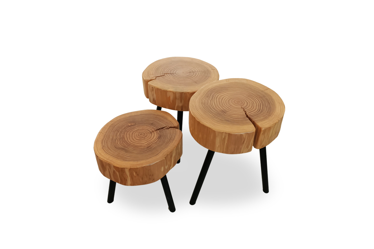 刻意設計成原木模樣的邊几,也可直接當成小椅凳坐。