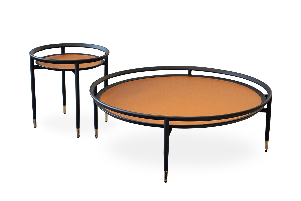 大茶几有旋轉功能,方便使用者拿取東西。高低茶几搭配,讓整個客廳更顯層次感。