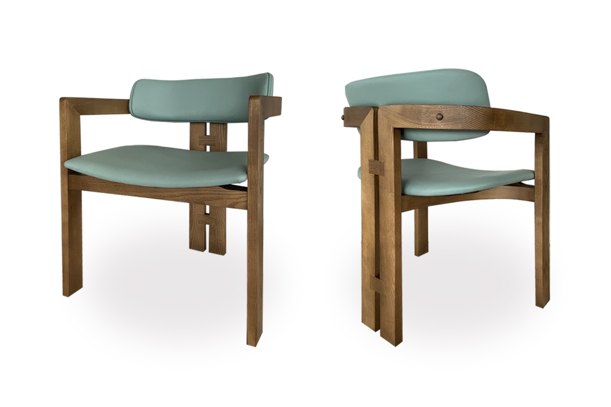 全牛皮的座椅柔軟舒適,椅腳特別設計兩個ㄇ字型,讓造型不同於其他椅子。