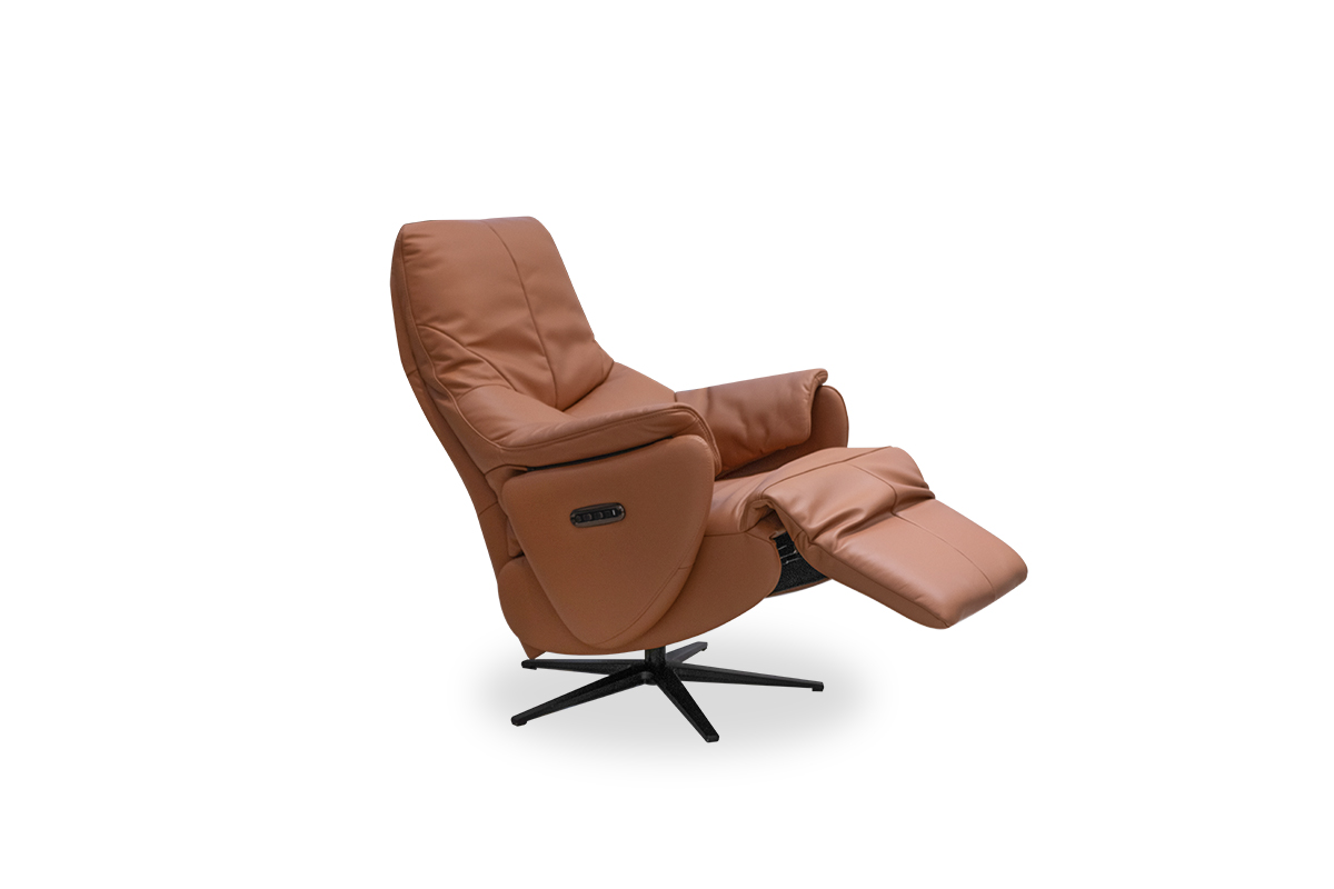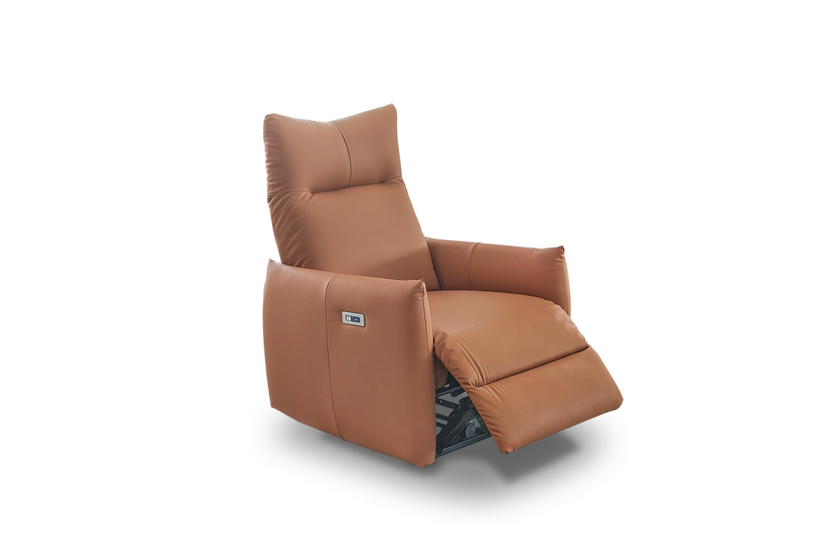 單人電動牛皮沙發,通常具有電動靠背和腳踏控制功能。可以自由調整沙發的傾斜角度和腳踏位置,提供更高程度的舒適;有些還帶有按摩和加熱功能,提供極致的放鬆體驗。